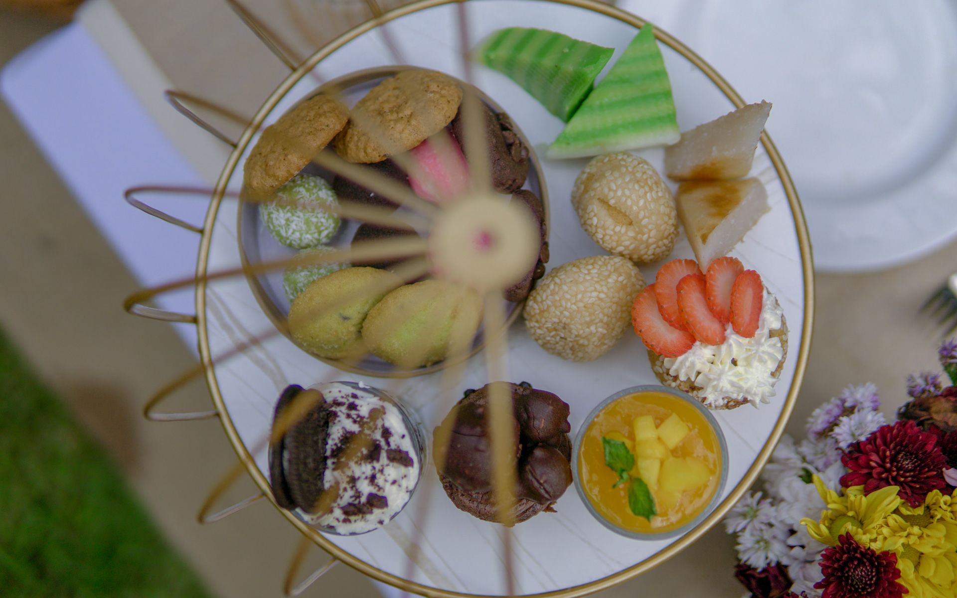 A moment of sweet indulgence completes the journey. A selection of homemade cookies, baked to perfection, brings familiar comfort. The spiced almond and bread pudding, infused with warming spices, offers a rich, decadent treat. Finally, for a refreshing contrast, tropical fruit skewers, drizzled with minted yogurt, provide a burst of natural sweetness and zest.